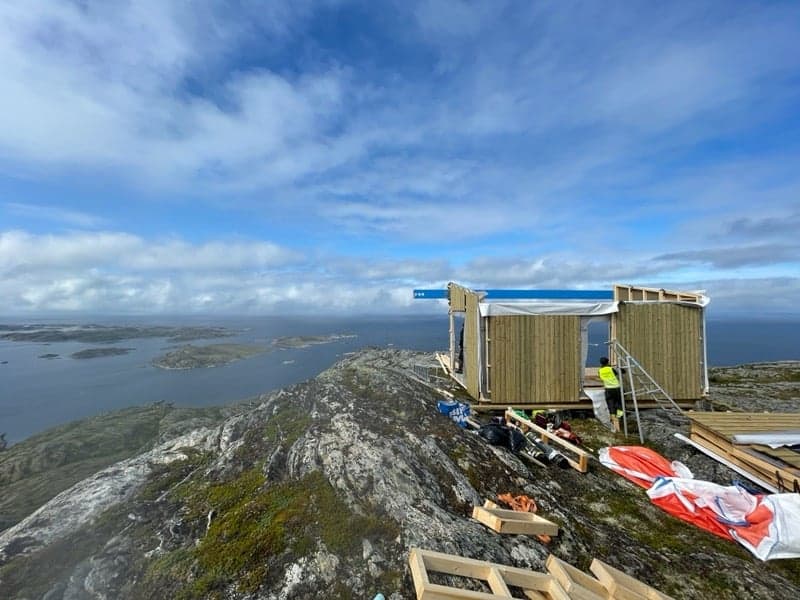 På toppen av Utvordfjellet, med flott utsikt over Folla, er det i ferd med å ferdigstilles en utsiktshytte til glede for både lokalbefolkningen og tilreisende.